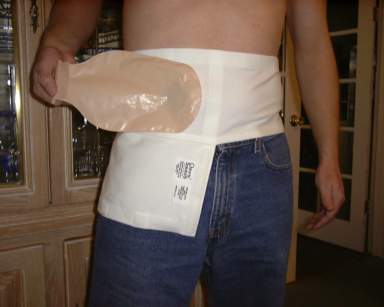 It is not necessary to remove your Better Life Ostomy Belt when it is time to empty. Just partially open the pocket by peeling back the top corner enough that you can retrieve the tail end of your pouch to pull it out and point it downward. Let it hang down clear of the belt and empty as you normally do. You will find that the tail end of the pouch reaches down almost as far while emptying as it does when a pouch is attached in a vertical position.